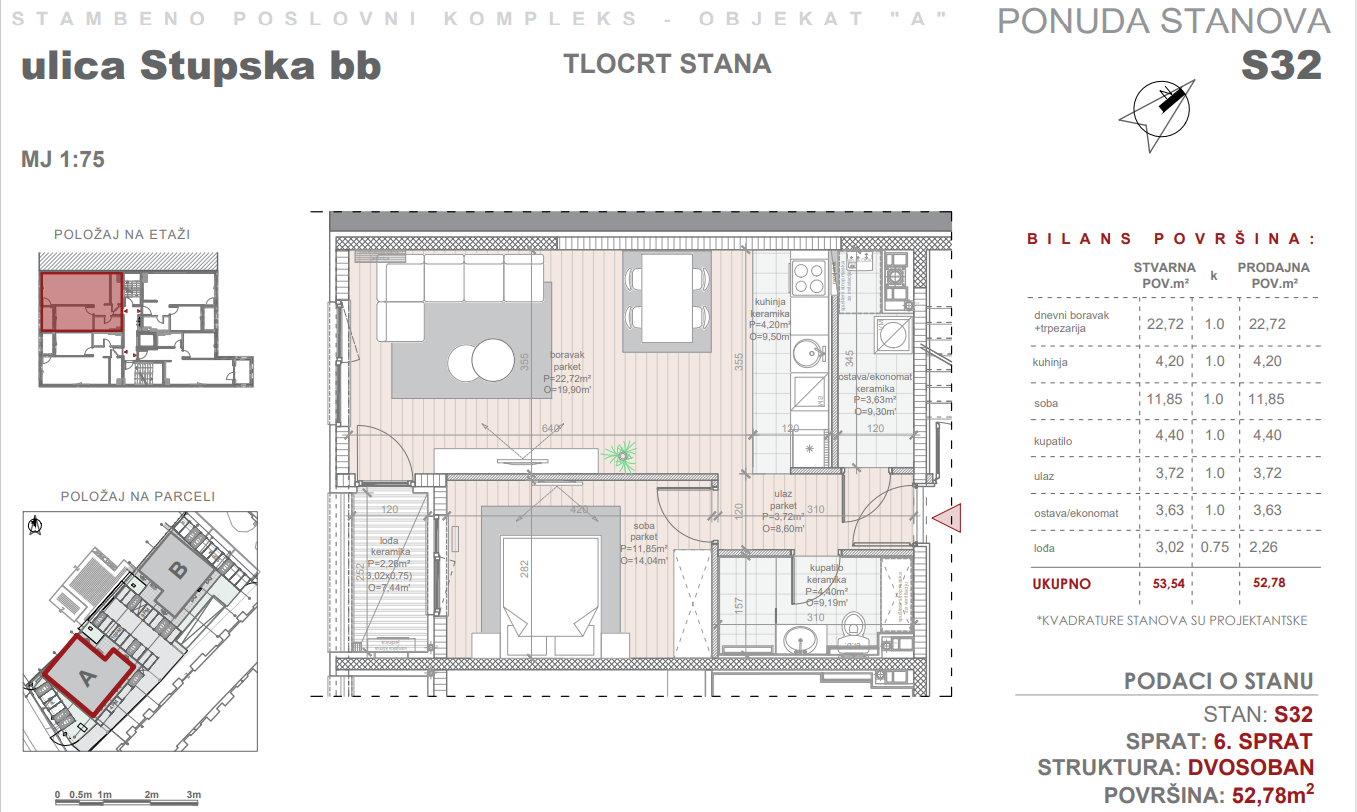 Stup | S32 52,78m2 LA | Novogradnja | Ulica Stupska