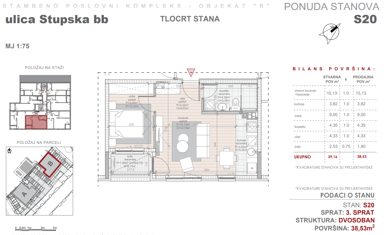Stup | S20 38.53m2 LB | Novogradnja | Ulica Stupska
